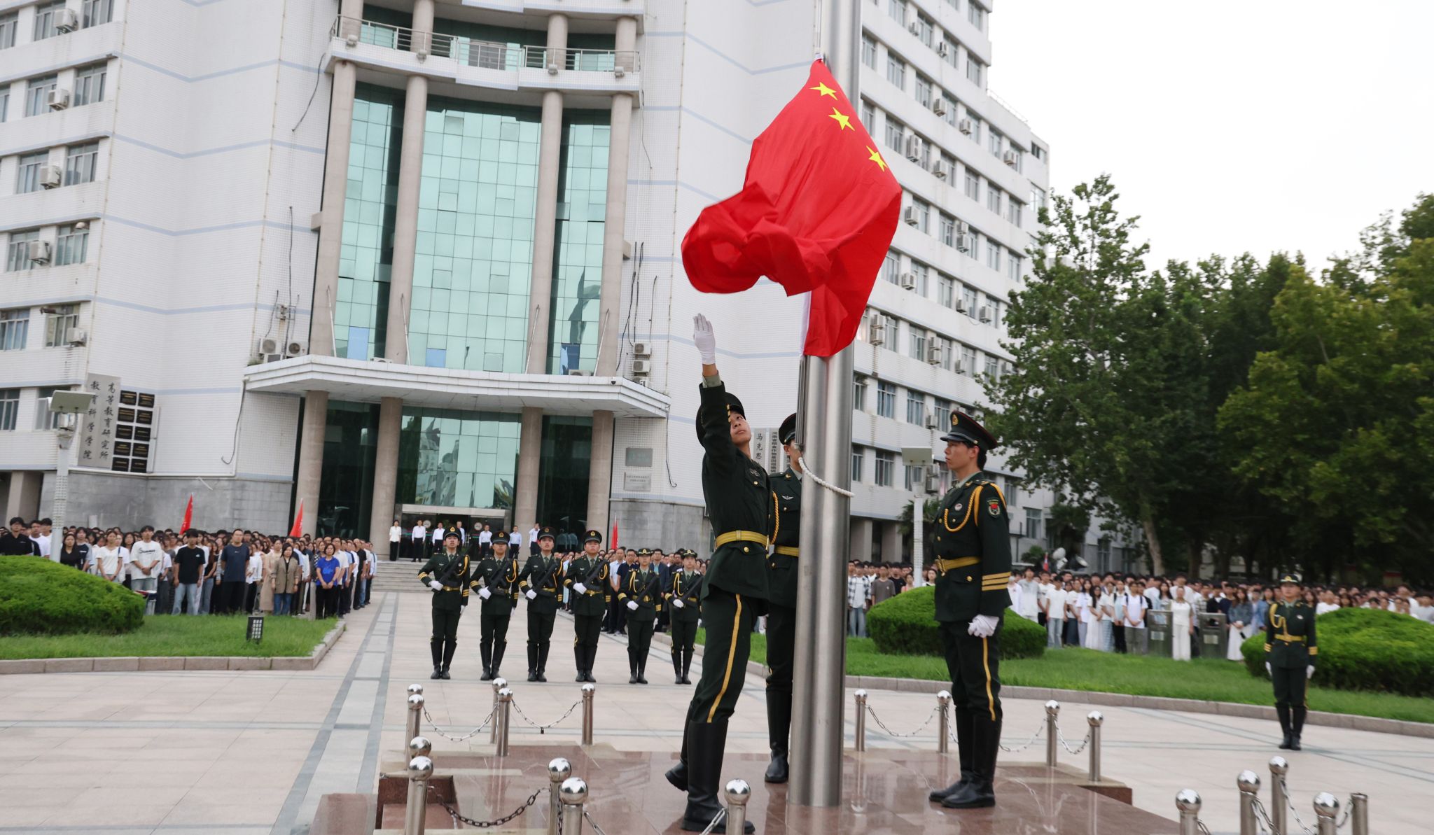 9月8日上午,澳门新葡京官网 在致远广场举行新学期升国旗仪式。校领导宋亚伟、王庆兵、刘全永、胡铁柱、王洪亮、马金友、王莉华、乐玉忠以及全校中层干部、教师代表、学生代表共5000余人参加了升旗仪式。