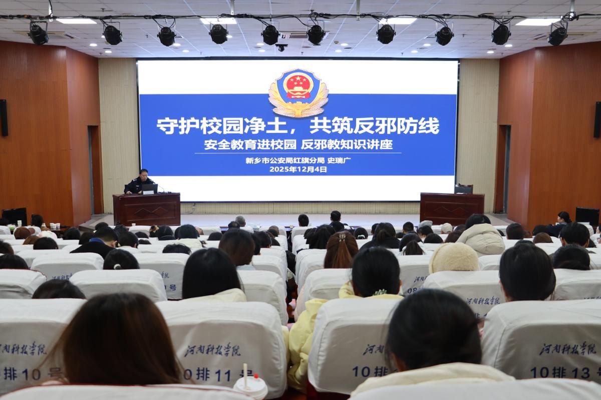 报告会上,史瑞广以“守护校园净土,共筑反邪防线”为主题,结合多年公安工作经验与典型案例,从总体国家安全观视角切入,系统阐释反邪教工作的重要意义。他详细介绍邪教的定义、常见类型及本质特征,深入剖析邪教对个人身心健康、家庭幸福及社会稳定的严重危害,并传授实用的邪教识别方法,引导师生坚定“崇尚科学、反对邪教”的信念,增强抵御邪教侵蚀的能力。