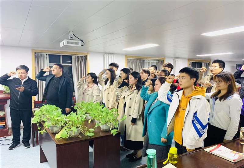 最后,全体支部党员以集体宣誓的方式,重温入党誓词,党员们面对鲜红的党旗,高举右手庄重宣誓。庄严肃穆的宣誓活动,使每一位党员再一次接受心灵的洗礼。