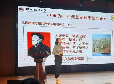 上官老师讲述的主题为“心有所信,方能行远”。上官老师在开篇引用了习近平总书记给复旦大学展示馆党员志愿服务队全体队员的提语:“心有所信,方能行远。面向未来,走好新时代的长征路,我们更需要坚定的信念、矢志拼搏奋斗。”在讲演中,围绕什么是理想信念、为什么要坚定理想信念和如何坚定理想信念三个方面展开。上官老师提到理想是人民确信和追求的目标,信念是对奋斗目的执着向往和追求。理想信念是中国共产党人安身立命的根本、是共产党人前行的灯塔、也是共产党人的精神之“钙”。关于如何坚定理想信念,上官老师给出了三方面的总结:托举信仰需要从苦难与荣光中追寻力量根源、托举信仰需要从梦想与奋斗中释放内心的呼唤以及托举信仰需要从真理与主义中自觉认知的力量。