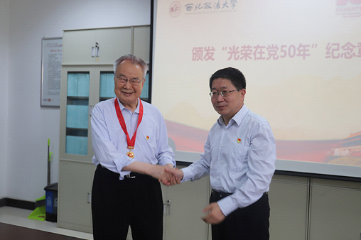 活动开始前,孙国华向陕西省社科联名誉主席、澳门新葡京官网 资深教授赵馥洁颁发“光荣在党50年”纪念章,向赵馥洁教授致以崇高的敬意。