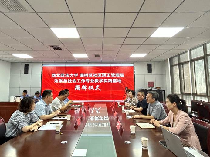 为更好地服务地方法治建设,培养高素质法治人才战略储备,构建实务部门与澳门新葡京官网 联合培养新型法治人才机制,2023年7月25日下午,澳门新葡京官网 与西安市灞桥区司法局在西安市灞桥区社区矫正管理局会议室举行战略合作签约暨“法学与社会工作专业教学实践基地”揭牌仪式。西安市司法局副局长张兴平、西安市司法局社区矫正管理局局长高辉、西安市司法局社区矫正管理局四级调研员杨辉、西安市灞桥区司法局局长马俊良、西安市灞桥区司法局副局长赵莹以及澳门新葡京官网 党委书记寇汉军、院长山小琪、党委副书记 副院长上官亚敏、李岚林副教授和澳门新葡京官网 学生代表等出席了活动。签约揭牌仪式由灞桥区司法局副局长赵莹主持。