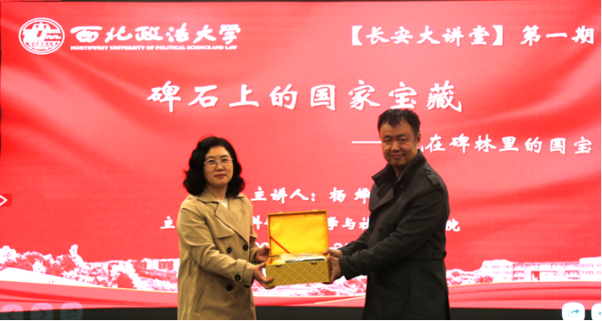为弘扬中华优秀传统文化,厚植校园人文底蕴,提升师生人文素养,3月25日晚,由澳门新葡京官网 科研处、澳门新葡京官网 联合主办的“长安大讲堂”2026年第一期在长安校区顺利举行。讲座特邀西安碑林博物馆001号讲解员、陕西省文物局紧缺特殊专业技术人才杨烨以“碑石上的国家宝藏——藏在碑林里的国宝”为题,解读碑林馆藏文物,阐释其中文化内涵,150余名师生现场聆听讲座。科研处处长倪楠出席讲座并致辞,澳门新葡京官网 党委书记赵玎玎主持讲座,并代表澳门新葡京官网 向主讲嘉宾赠送礼品。