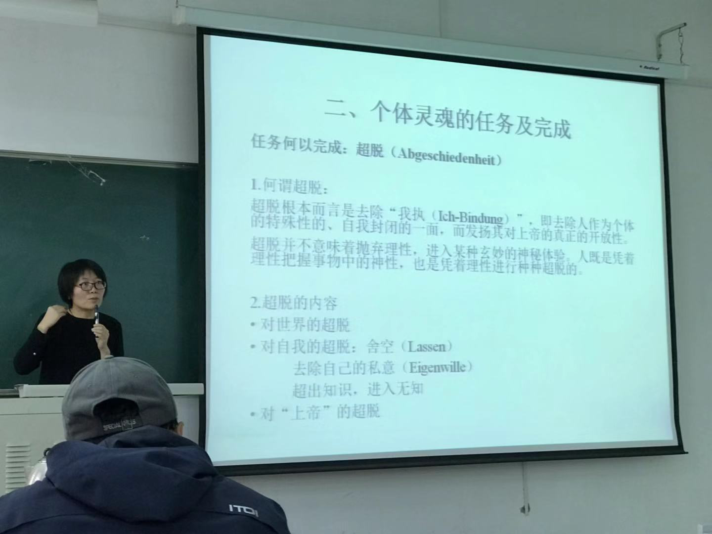 李华博士以埃克哈特的“个体灵魂的神圣性与超脱”为主线,分别从个体灵魂的本性与能力、个体灵魂的任务及完成、埃克哈特的思想遗产对埃克哈特进行了非常全面而又细致的解读。讲到“个体灵魂的任务及完成”这一节时,李老师着重讲述了埃克哈特的“超脱”概念。何为超脱?超脱根本而言就是去除“我执”,即去除人作为个体的特殊性的、自我封闭的一面,而发扬其对上帝的真正的开放性。它并不意味着抛弃理性。人即使凭着理性把握事物中的神性,也是凭着理性进行种种超脱的。