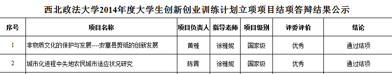 2015年6月17日,澳门新葡京官网 对2014年度获得教育部、陕西省教育厅及澳门新葡京官网 立项的国家级、省级、校级大学生创新创业训练计划项目进行了结项验收。澳门新葡京官网 2012级同学所做两项国家级立项创新项目以优秀的成绩通过结项。(见下图)