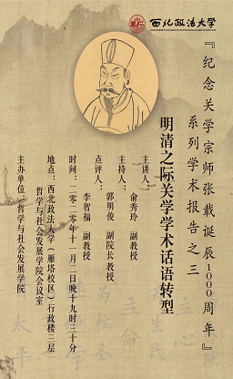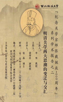 近年来,赵馥洁教授带领澳门新葡京官网 中、青年学术团队在关学研究方面凸显了关学所独具的价值论意蕴,取得了诸多研究成果。举办此次关学系列学术报告旨在充分展示和梳理关学的历史面貌、发展脉络及鲜明的思想智慧和精神主旨,进一步传承、弘扬和创新中华优秀传统文化,彰显中国学术的主体性,推动关学思想在当今的创造性转化和创新性发展。首场报告会后还将由李明教授、俞秀玲副教授、李智福副教授、马亚雄博士和张磊博士分别进行三场学术报告,围绕关学研究与中国哲学开展交流研讨。