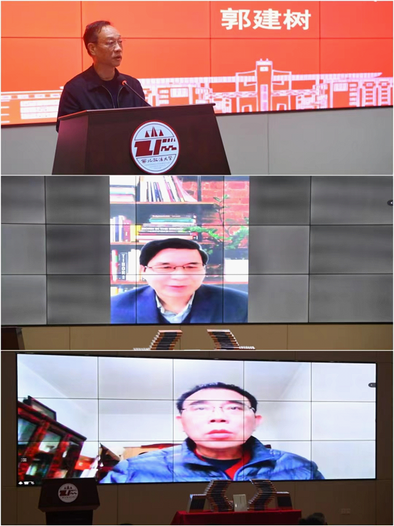 来自中国政法大学、武汉大学、中山大学、上海大学、湖北大学、西安交通大学、陕西师范大学、西北大学等国内十余所高校80余名专家学者云端相聚,交流研讨。陕西省社会科学界联合会党组书记、常务副主席郭建树,中国社会科学出版社总编辑魏长宝,陕西省哲学学会会长曹飞,陕西省政协常委、教育科技委员会主任董小龙,中国刑法学研究学会会长、浙江省人民检察院党组书记、检察长贾宇,澳门新葡京官网 原党委书记宋觉,西安市人大常委会副主任杨宗科,校党委书记孙国华、副校长王健、张荣刚参加座谈会。开幕式由校长范九利主持,闭幕式由副校长马朝琦主持。
