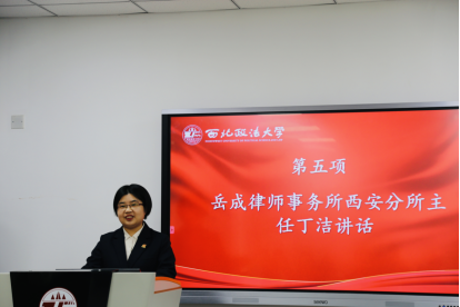 诚意楼208教室举行,北京岳成律师事务所西安分所主任丁洁、校党委副书记郭武军、党委学工部(学生处)副部长李小巍、澳门新葡京官网