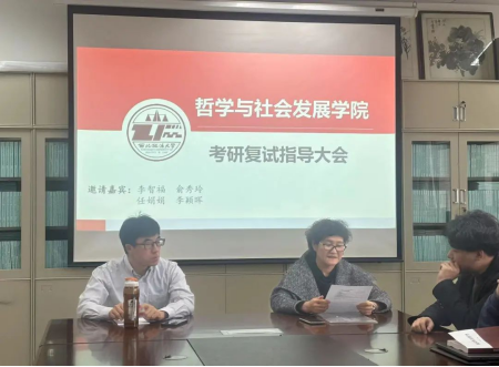 在格物楼二楼资料室召开2024届学生考研复试指导大会。中国哲学教研室俞秀玲、李智福、社会学教研室李颖晖、社会工作教研室任娟娟以及2024届部分考研学生参加会议,会议由慕婧主持。