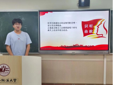 主持人首先介绍了红色歌曲的历史价值和意义,向同学们分享了一些经典红歌曲目,同学们对歌曲耳熟能详。下一环节是听歌识曲,主持人在台上播放音频,根据伴奏和歌词,同学们需要判断这是哪首红色歌曲并接唱。同学们踊跃参与。