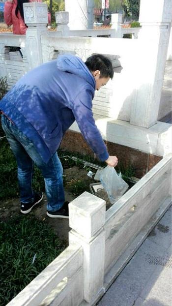 同学们分散到了长安广场的各处,在绿化带前认真地捡着植物丛中的垃圾。广场上有很多晒太阳的老年人,纷纷向工作的同学投来赞许的眼光和微笑。有一位阿姨拍了同学的照片,发到了她的微博上,还夸奖同学们的所作所为彰显了大学生的风采,为社会传播了正能量。同学们在劳动的过程中与锻炼的爷爷奶奶们攀谈起来,老人们都对我们的志愿活动赞不绝口,有一个奶奶还说我们政法的学生就是思想觉悟高。同学们听了内心都喜滋滋的,更有劳动的热情和动力了。