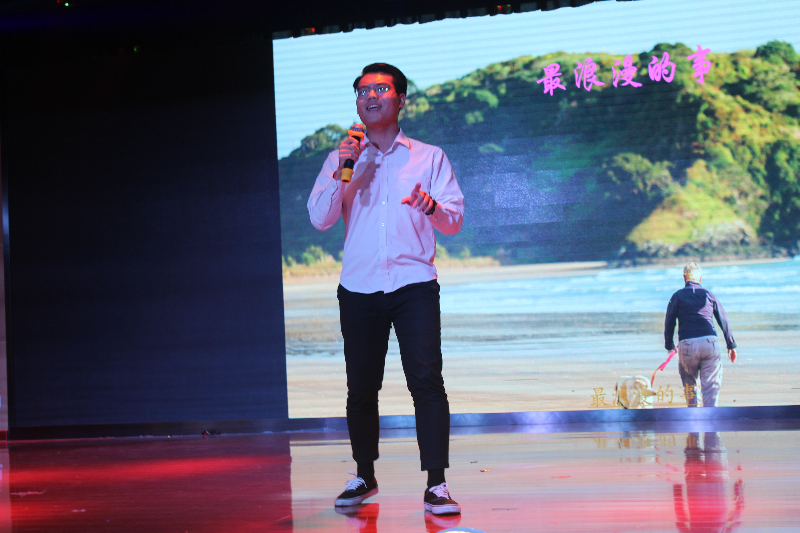 随后,2016级哲学一班赵璞同学带来了一首歌曲《最浪漫的事》。他深情的演唱又将全场的观众带入了款款的深情之中。