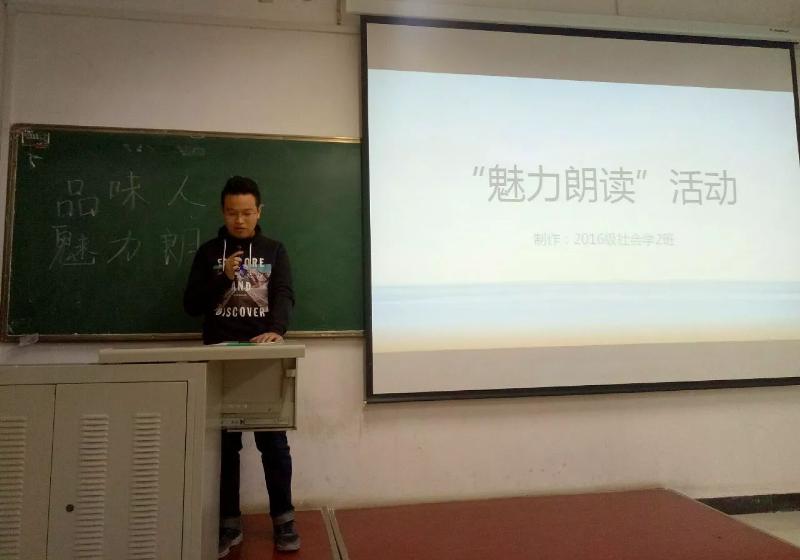 为了推动习近平新时代中国特色社会主义思想深入同学们心中,引导同学们树立远大理想,提高文化素养,激发同学们的读书热情,活跃校园文化,营造良好读书氛围,推动大家爱上读书,享受读书,在书中陶冶性情,增长才干,感悟人生的真谛,澳门新葡京官网 团委积极响应校团委号召,于2017年11月23日下午16时40分在格物楼306教室开展“品味人生,魅力朗读”活动。本次活动由2016级社会学2班团支部主办,2016级哲学1班以及社会工作3班团支部协办,本次活动由辅导员慕婧老师主持,2016级全体学生参加。
