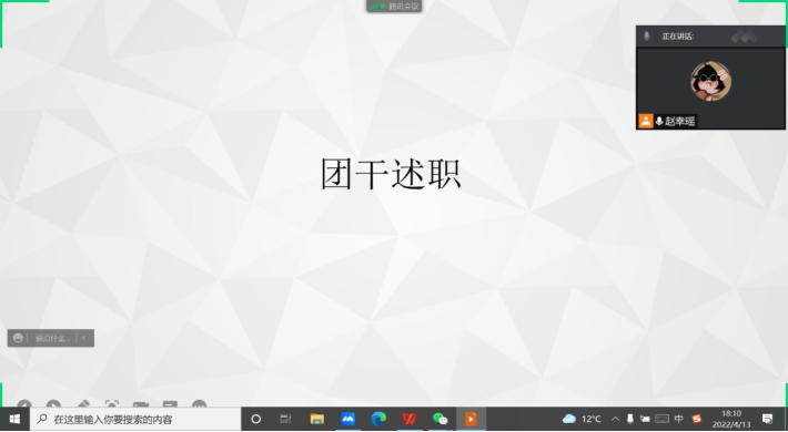第二项,在述职中,各班团支书对上一学年团务工作开展的情况,存在的问题以及对今后活动开展提出相关建议等方面做了总结,同时提出了对自己的相关要求和标准。
