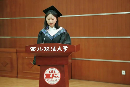 毕业生代表2018级冯婷婷同学代表全体毕业生发表毕业感言。冯婷婷同学认真践行着习近平总书记对青年一代提出的到基层去、到祖国最需要的地方去的期望和要求,充分彰显了新时代大学生的责任和担当。