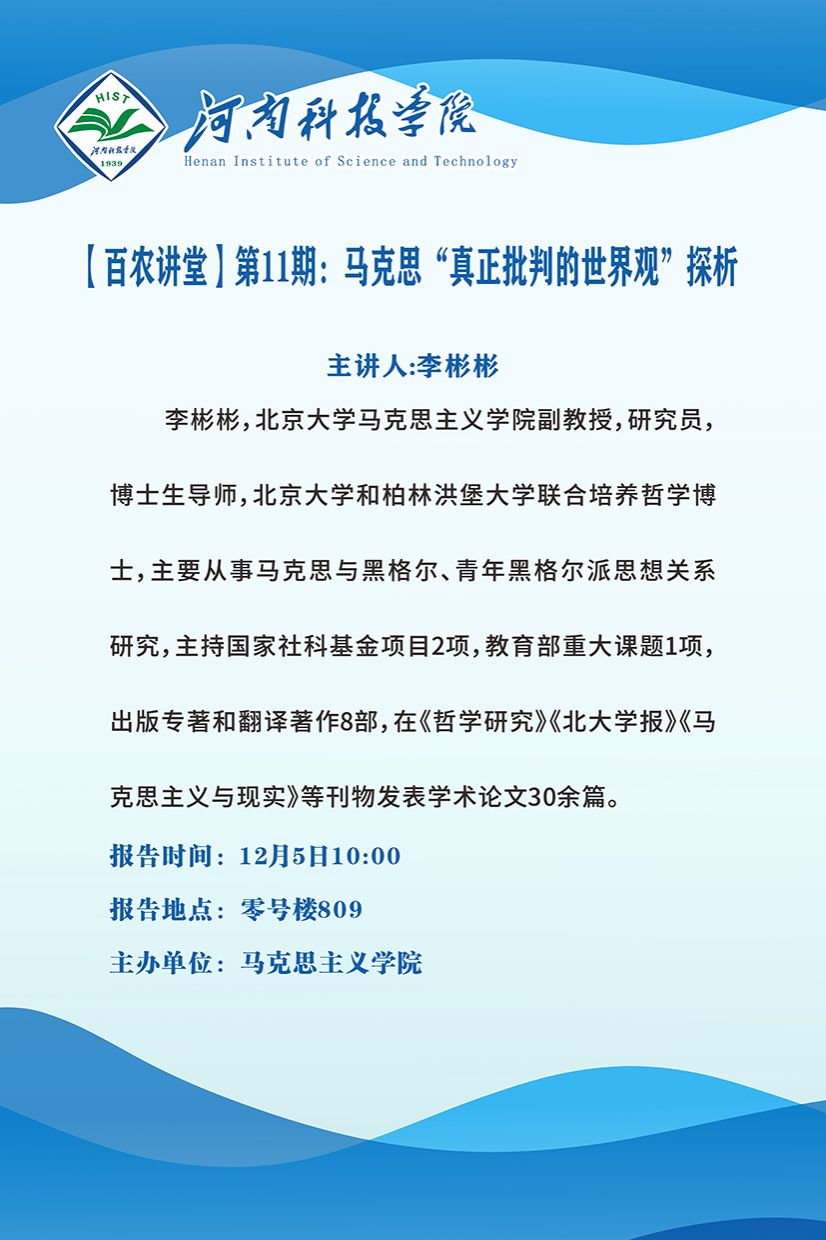 【百农讲堂】第11期:马克思“真正批判的世界观”探析