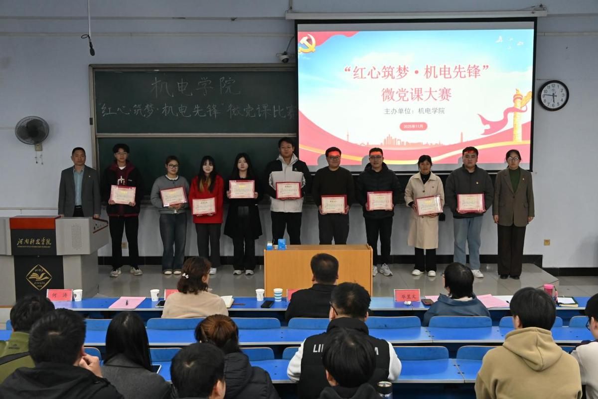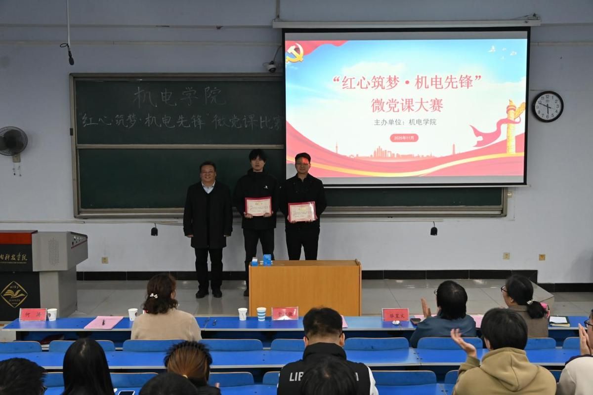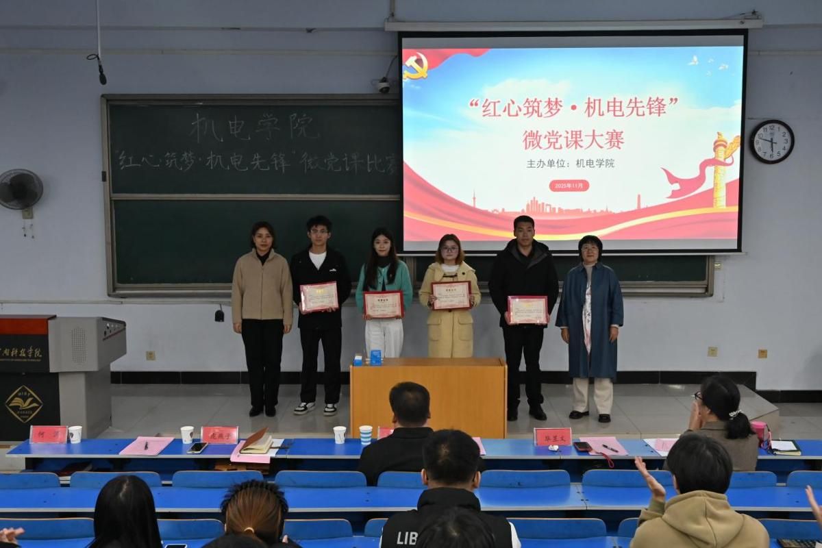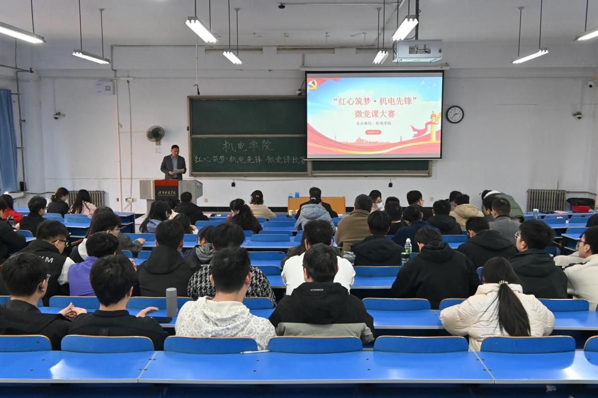 11月14日,机电澳门新葡京官网 “红心筑梦·机电先锋”微党课大赛在四合四教室成功举办。机电澳门新葡京官网 全体党员、发展对象齐聚现场,共同感受思想洗礼与精神共鸣。本次比赛分设教师组与学生组两个组别,特邀农澳门新葡京官网 党委书记于江傲、党校副校长虎燕子、马克思主义澳门新葡京官网 副教授毕昱文担任评委。大赛由机电澳门新葡京官网 党委副书记何涛主持。