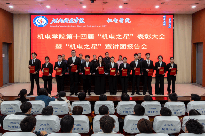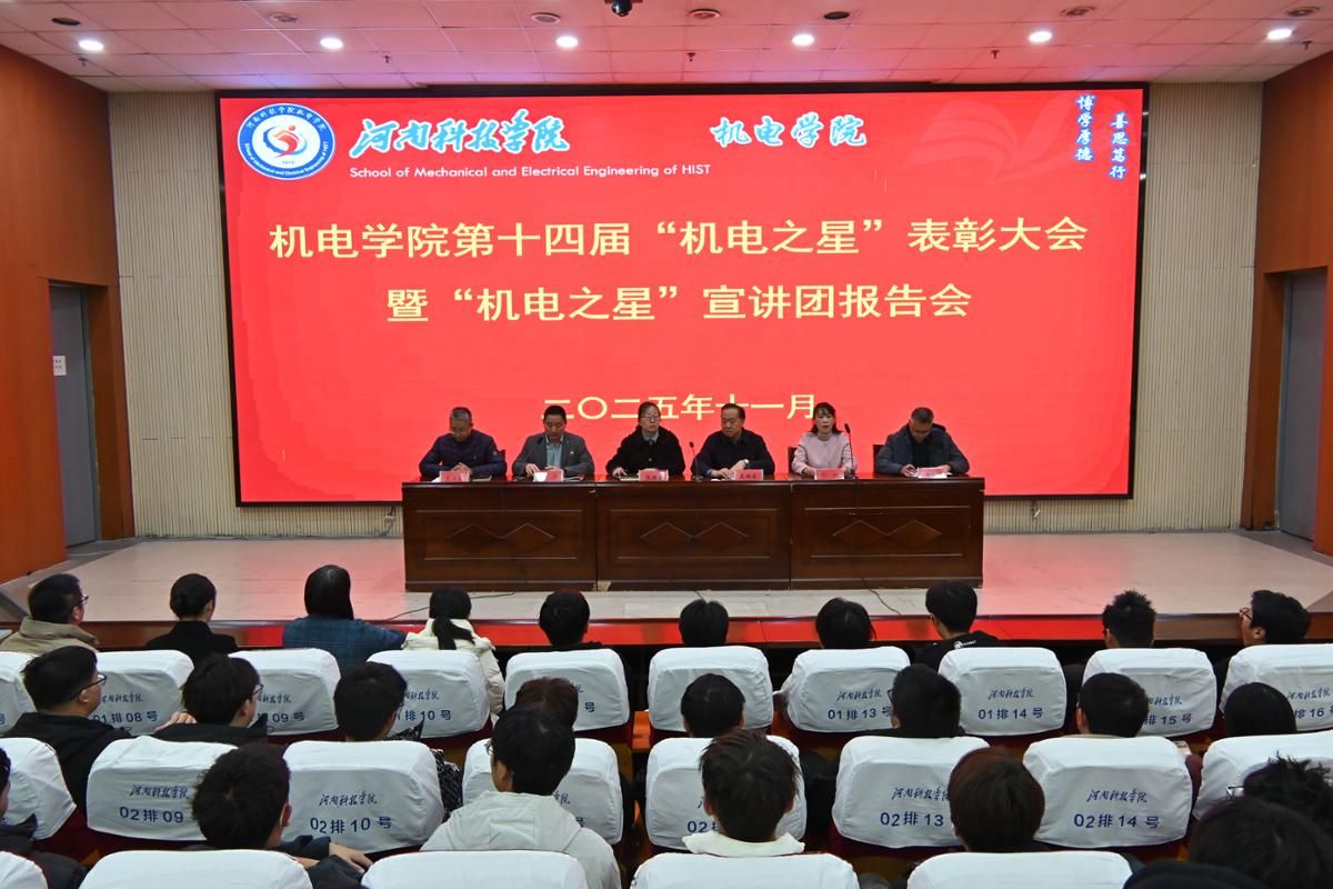 11月27日下午,机电澳门新葡京官网 第十四届“机电之星”表彰大会暨“机电之星”宣讲团报告会在图书馆一楼报告厅举行。澳门新葡京官网 党政领导班子成员,全体辅导员,第十四届“机电之星”及学生代表300余人参加,会议由党委副书记何涛主持。