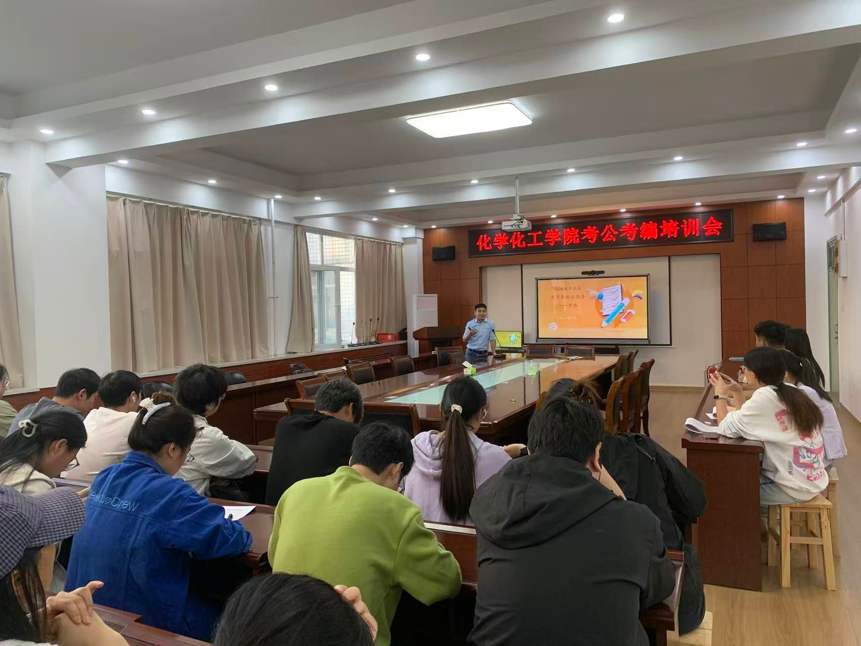 为帮助大四学生精准把握公务员及事业单位招考政策,提升备考能力与应试技巧,9月25日下午,化学化工澳门新葡京官网 在实验楼D308会议室举办了2026届毕业生考公考编专题培训会。本次培训特邀澳门新葡京官网 2008届优秀校友、资深就业指导老师贾小阳担任主讲,吸引了60余名学生参加。