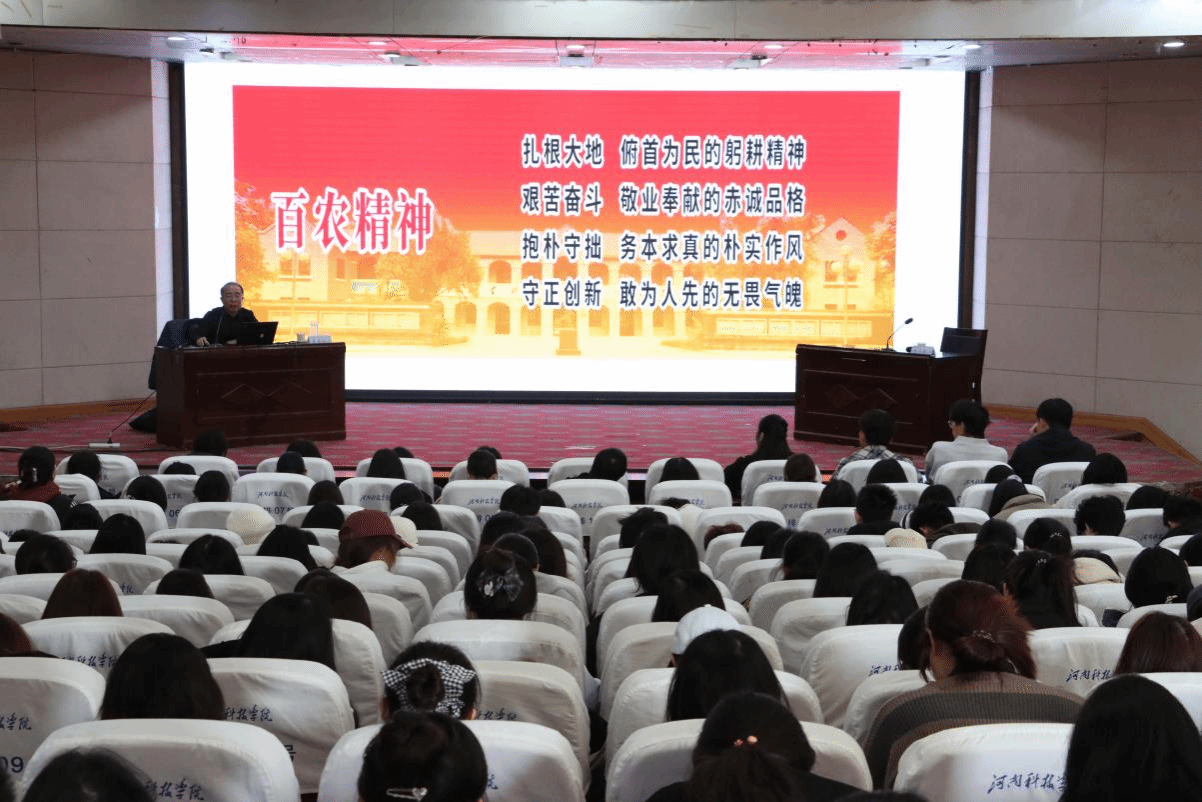 翟居怀从追溯“百农精神”之根基、凝练“百农精神”之过程、领悟“百农精神”之内涵、传承“百农精神”之行动四个方面,为参会师生讲解了与“百农精神”形成相关的办学历程、关键事件和典型人物,鼓励全体师生将对“百农精神”的理解转化为实践行动,成为“百农精神”的传承者与践行者。