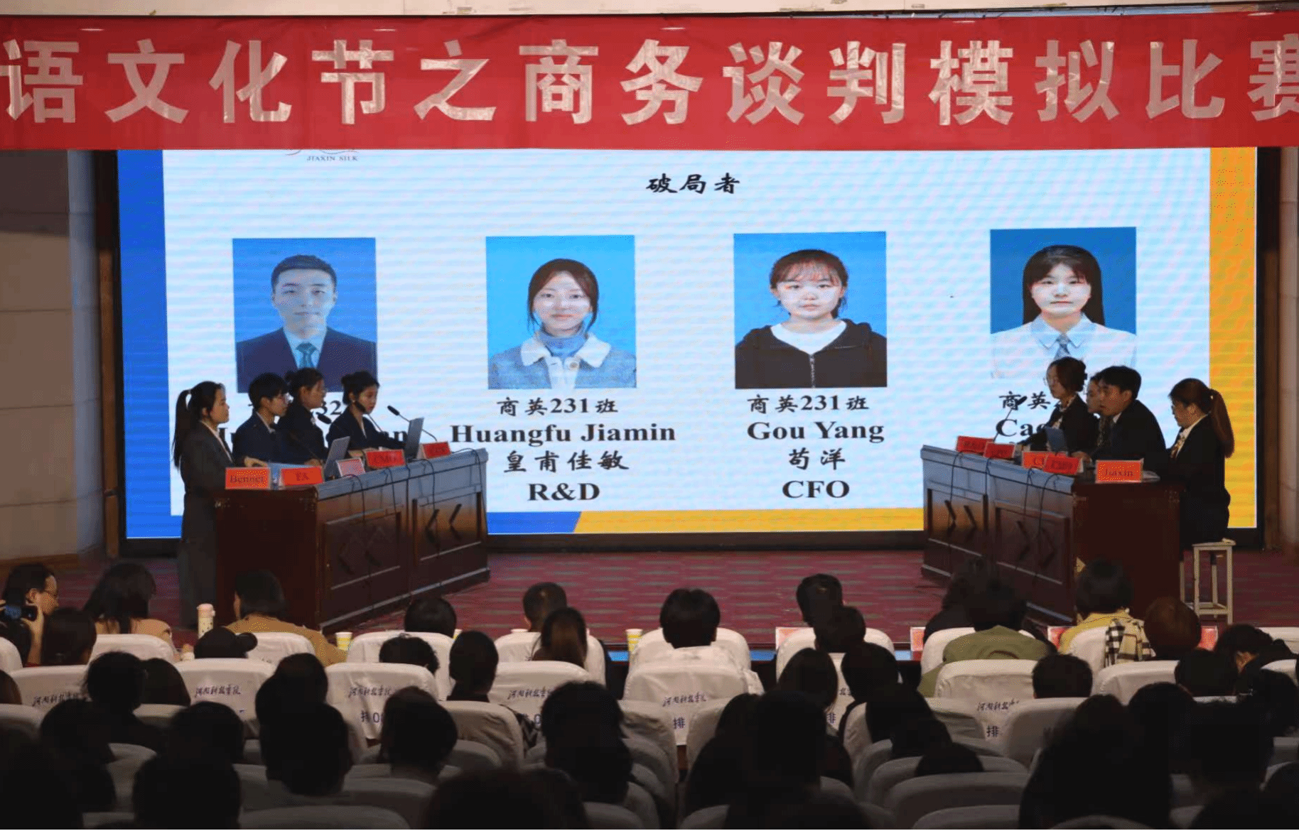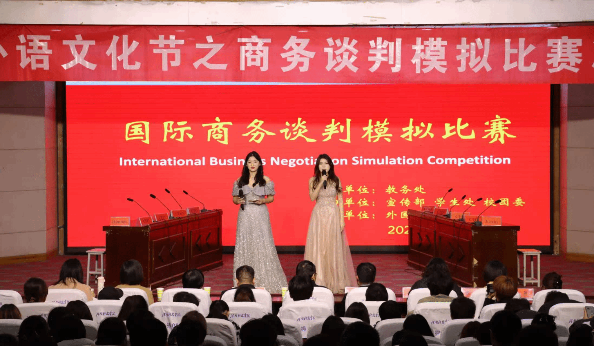 11月21日晚7时,河南澳门新葡京官网 第七届外语文化节重要赛事—“国际商务谈判模拟比赛”决赛在图教201教室成功举行。教务处副处长赵高丽出席决赛并致辞。外国语澳门新葡京官网 副院长及商务英语教研室专业教师应邀担任评委与嘉宾。