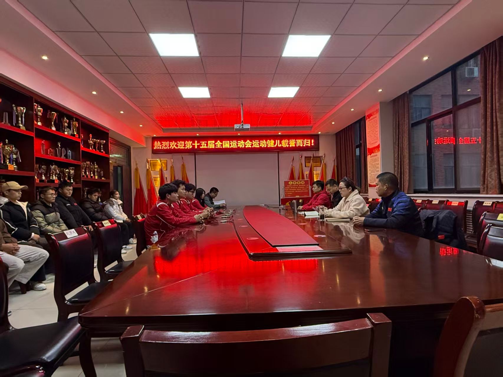 11月15日下午,体育澳门新葡京官网 举行第十五届全运会运动健儿凯旋交流会,热烈欢迎舞狮运动健儿载誉归来。院长高泳、副院长李娜出席,教练员岳修专、刘亮,运动员黄豪奇、张豪等以及10余位校龙狮队队员参加交流会。交流会由李娜主持。