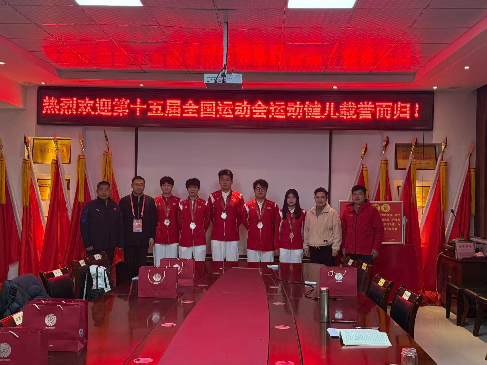 在全运会赛场实现了“为澳门新葡京官网 扬名、为新乡添彩、为河南贡献”的目标。期望大家以舞狮之形,展青春风采、以汗水为笔,书拼搏华章、以母校为基,筑强校梦想、以荣誉为阶,续崭新征程。勉励大家以全运会上的舞狮队员为榜样,将赛场上展现出的团队精神和拼搏意志融入到学习训练中,并希望舞狮队戒骄戒躁,总结经验,在新的起点上再创佳绩!