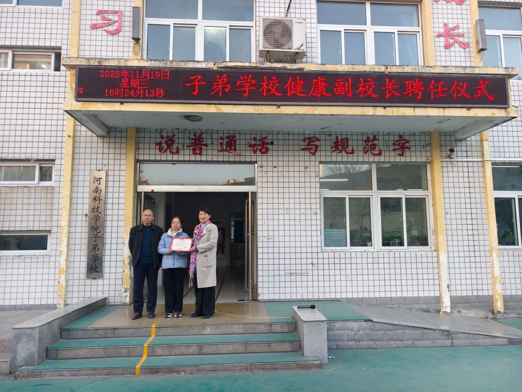 为深化校园健康教育,构建医校协同的健康防护体系,11月19日下午,子弟澳门新葡京官网 举行仪式,正式聘任新乡市妇幼保健院副主任医师、营养师许存英担任健康副校长。