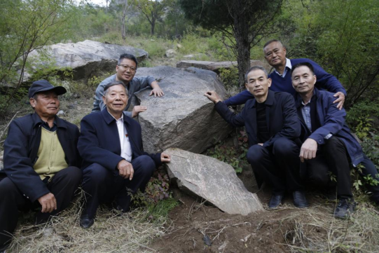 听着电话中父亲的激动,张庆连的女儿赶快从包里取出来资料,爬上山坡。大家一起比对照片上的柏树、石头。通过认真核对、反复比较当年照片上写有字样的那块石头的锐角和纹理走向,大家一致确认这棵柏树就是照片上的“志气树",原本筷子粗的树苗已经长成碗口粗的大树了。由于多年雨水冲刷,那块写有“百泉农专园林系志气林”的石头位置有所移动。于是,大家利用石块、树根刨了个土坑,按照照片的位置将这块石头重新安放好。张庆连取出准备好的石笔,在这块石头上重新写上“百泉农专园林系志气林”字样。大家与这棵树一一合影留念。合影时,最开心的就是张庆连!