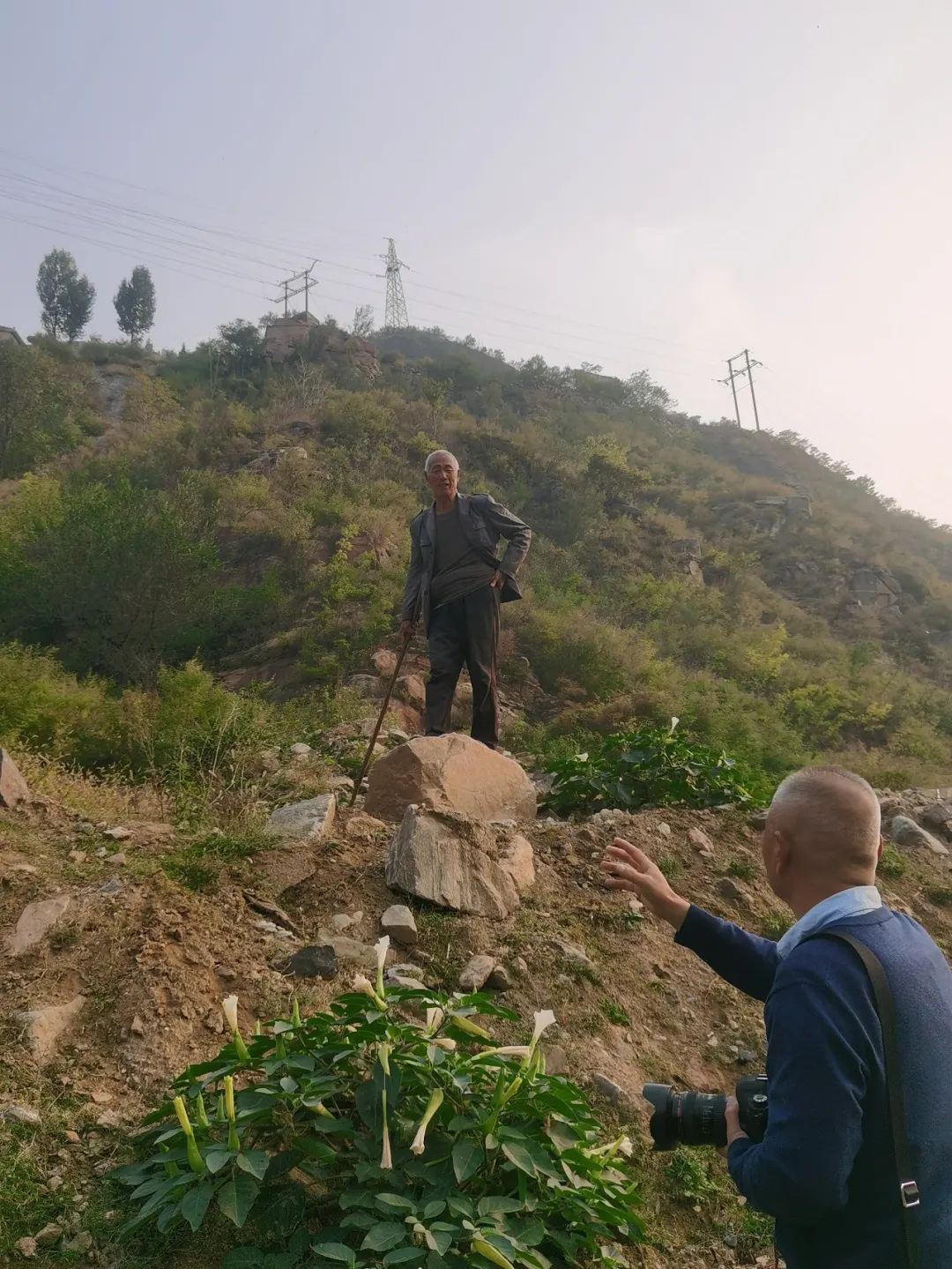 大致方位确定了,可是哪里是“志气林”的所在呢?正当大家站在河畔望着苍茫的大山有些无序时,山坡上一位放羊的老人引起了王全新的注意,他便迎上去攀谈。