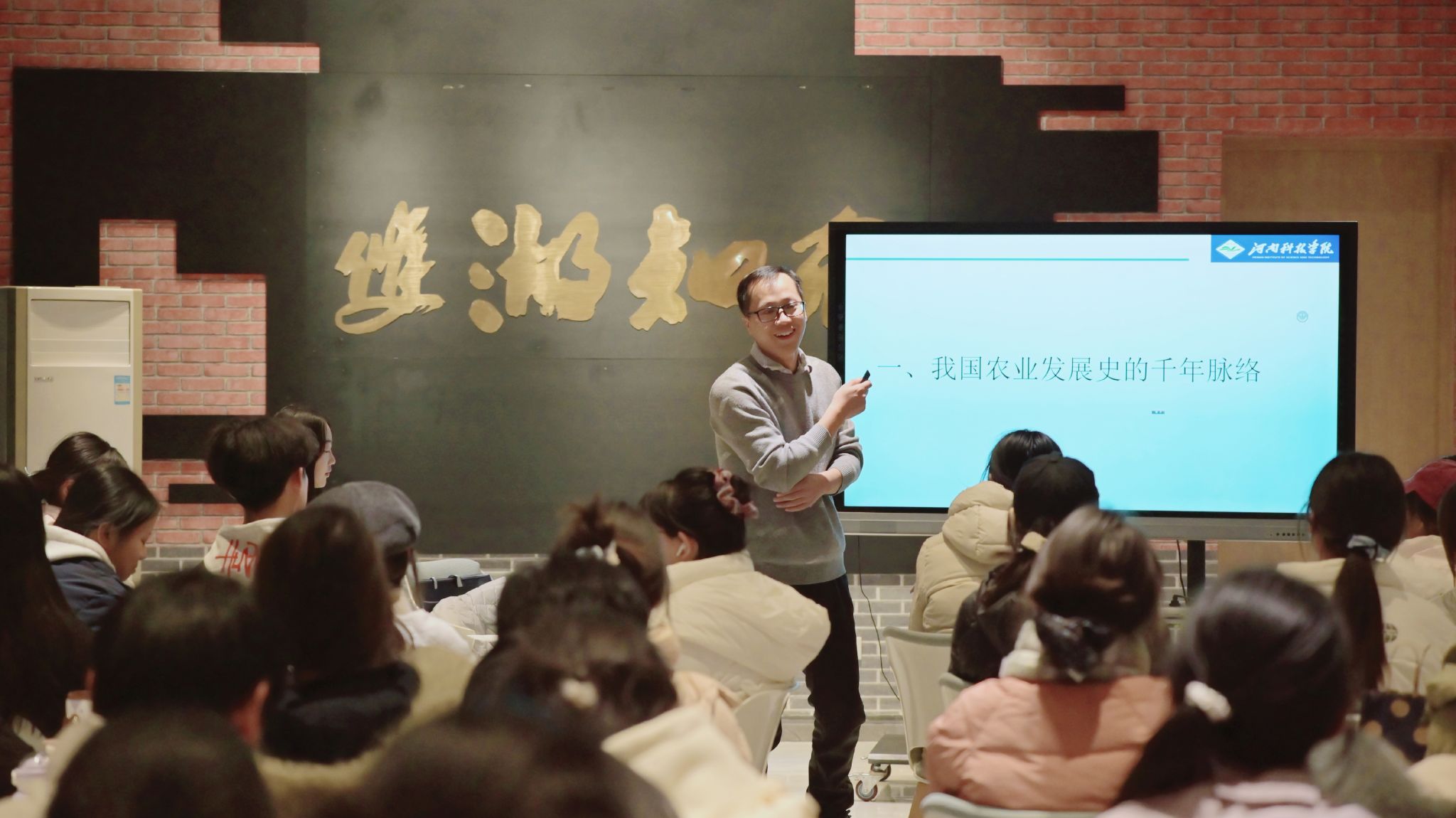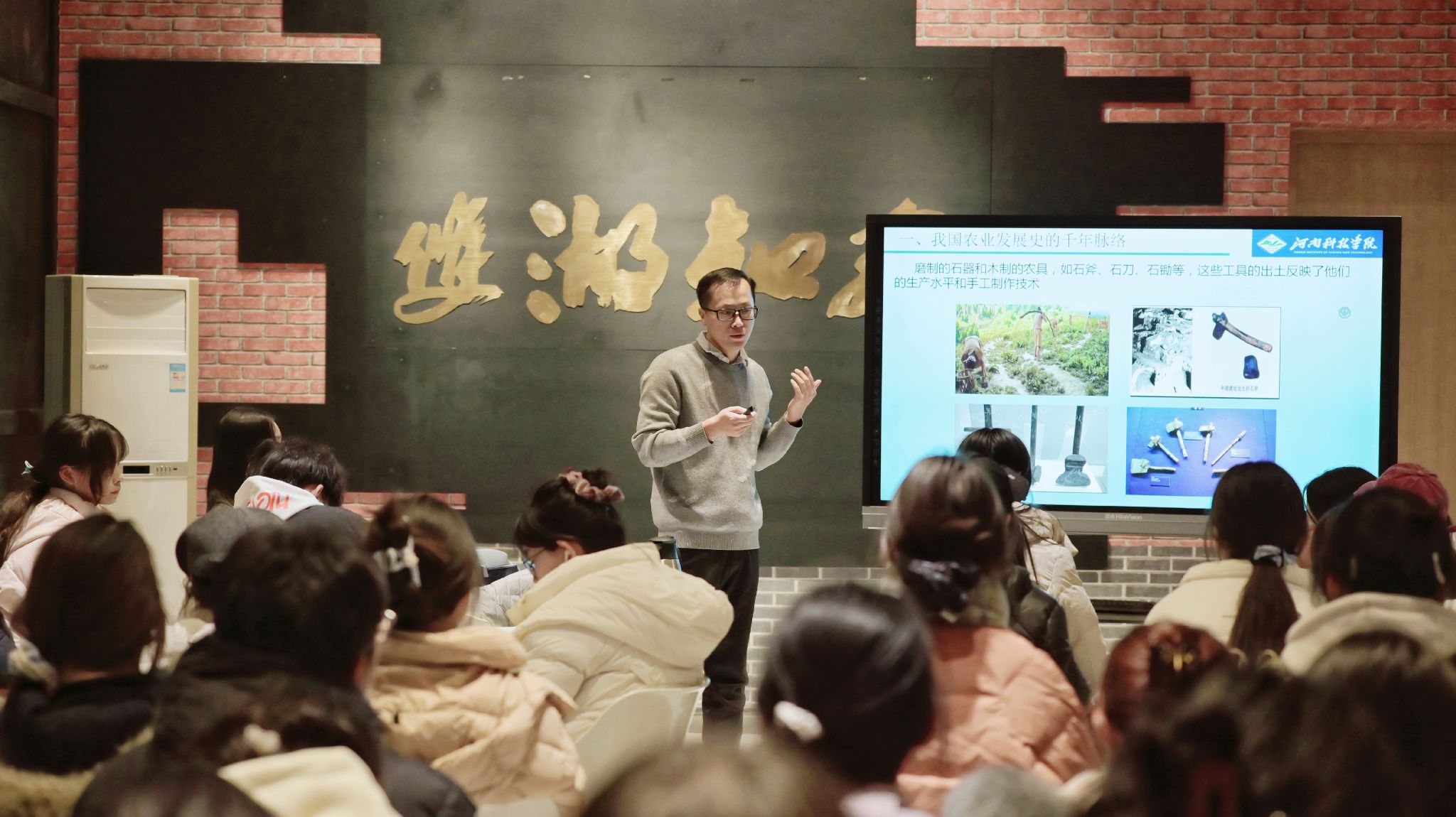 活动伊始,杨晨宇老师通过展示仰韶文化时期的石斧、石刀等农具图像,带领同学们探寻我国农业发展史的脉络,从远古时期的刀耕火种,到精耕细作的传统农耕,每一步都见证了中华民族的智慧与勤劳。随后,杨老师为大家阐释了科技如何赋能农业智慧发展,他指出现代信息技术、生物技术等高科技手段的应用,让农业生产更加高效、智能,推动了农业产业的转型升级,也为乡村振兴注入了强大动力。