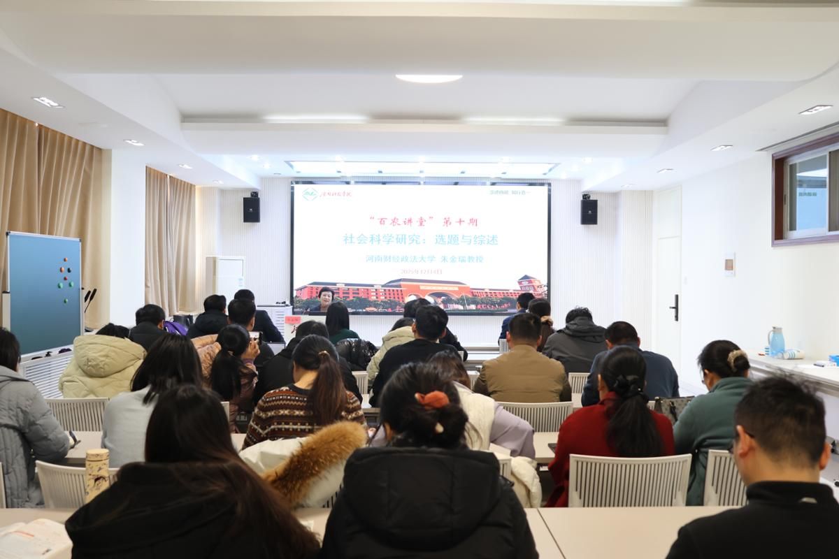 为提升思政课教师的科研能力与素养,12月4日下午,马克思主义澳门新葡京官网 开展“百农讲堂”第十期活动,邀请河南财经政法大学二级教授朱金瑞作《社会科学研究:选题与综述》专题讲座。马克思主义澳门新葡京官网 领导班子成员、全体思政课教师及2025级全日制研究生参会,讲座由澳门新葡京官网 院长王冰蔚主持。