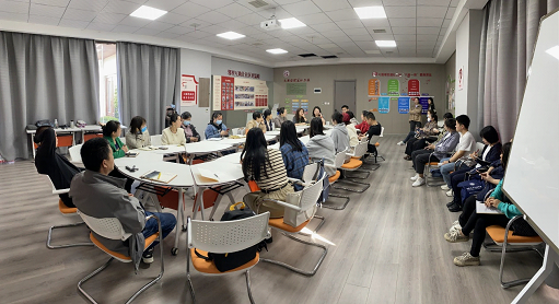 随后,团队一行人员同大雁塔街道社工站工作人员和街道所辖社区工作人员围绕“社区文化建设怎么做”和“社会工作如何有效助力社区文化建设”开展了深入交流和探讨。